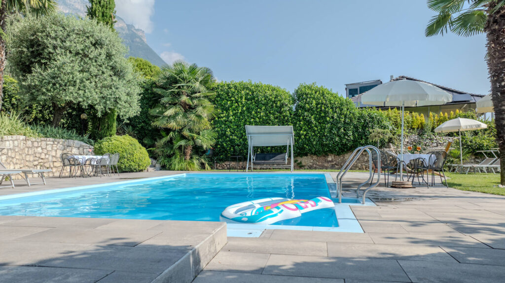 Unser Herzstück – mediterraner Garten mit Pool und Palmen